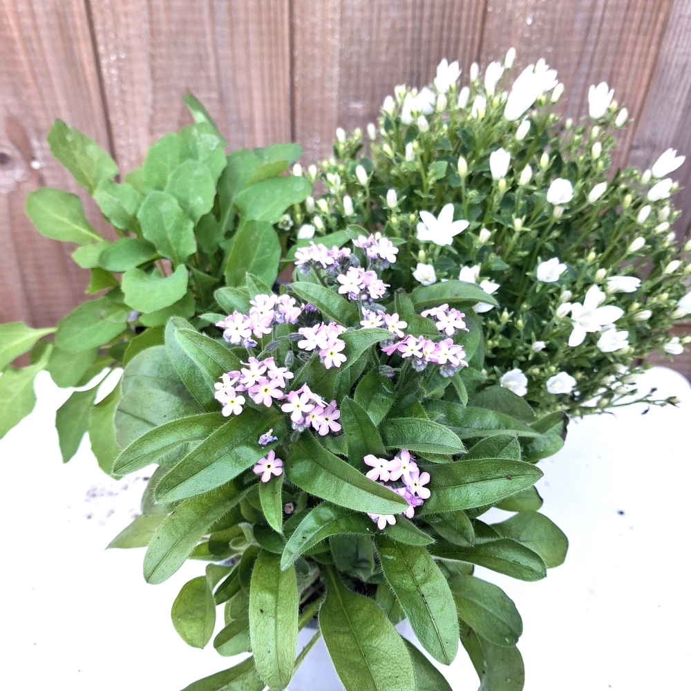 - 1 x potted Forget-me-not (pink, white or blue flowers)